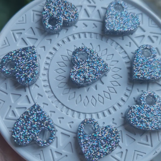 Add a unique, sparkling touch to your jewelry with this magical resin heart charm .