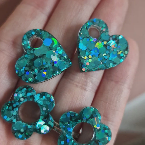 Add a unique, sparkling touch to your jewelry with this magical resin heart charm .