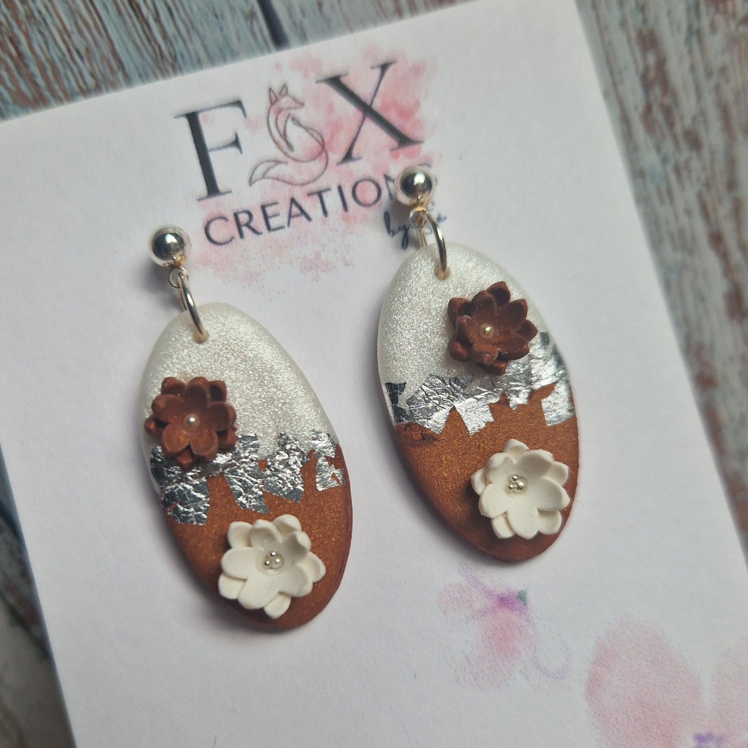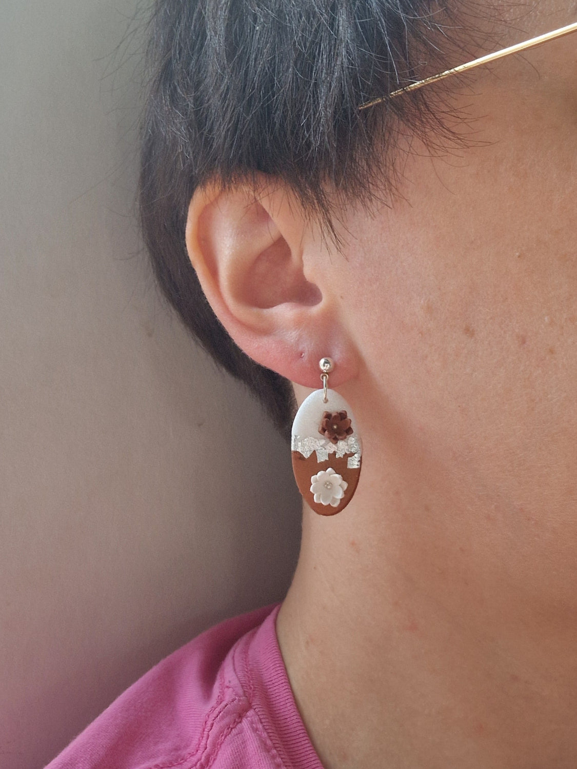 All jewelry pieces are made of polymer clay and lovingly handcrafted. First, the appropriate clay colors are mixed and, if necessary, a pattern is added. The clay is then cut and shaped and placed in the oven for 50 minutes. Once cooled, the pieces are sanded, polished, drilled, and cleaned of fine dust.