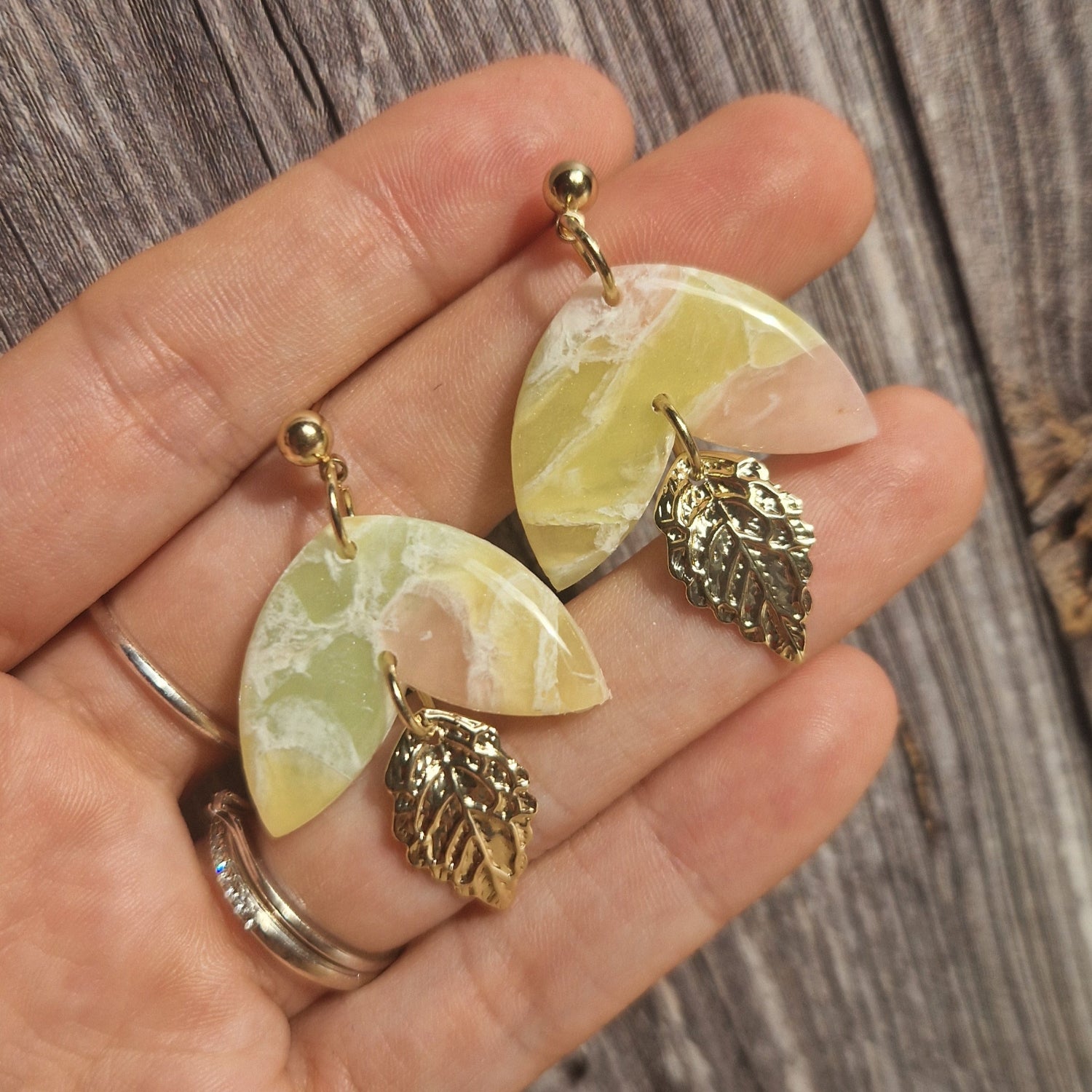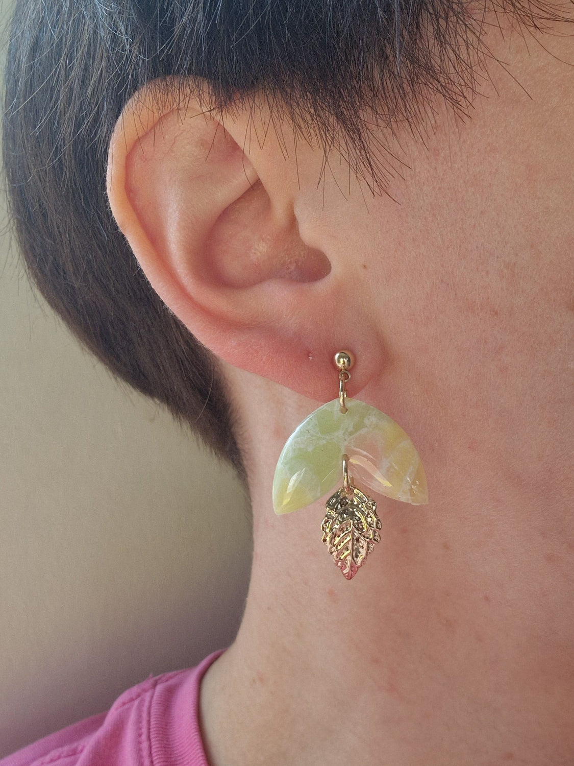 All jewelry pieces are made of polymer clay and lovingly handcrafted. First, the appropriate clay colors are mixed and, if necessary, a pattern is added. The clay is then cut and shaped and placed in the oven for 50 minutes. Once cooled, the pieces are sanded, polished, drilled, and cleaned of fine dust.