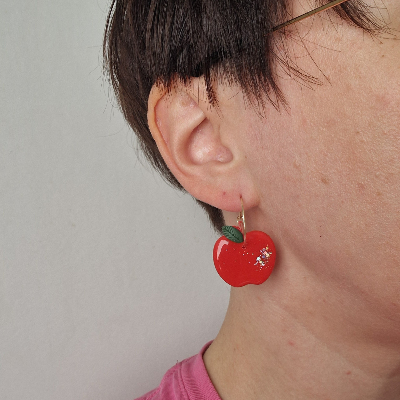 📚🍎 Back to school in style – apple hoop earrings made of clay 🍎📚