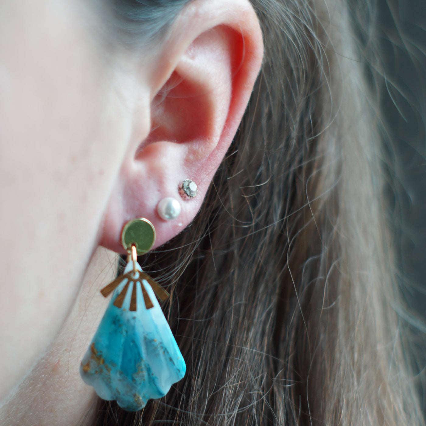 Some are then given a resin coating for extra shine and are then assembled with high-quality components to create finished pieces of jewelry.