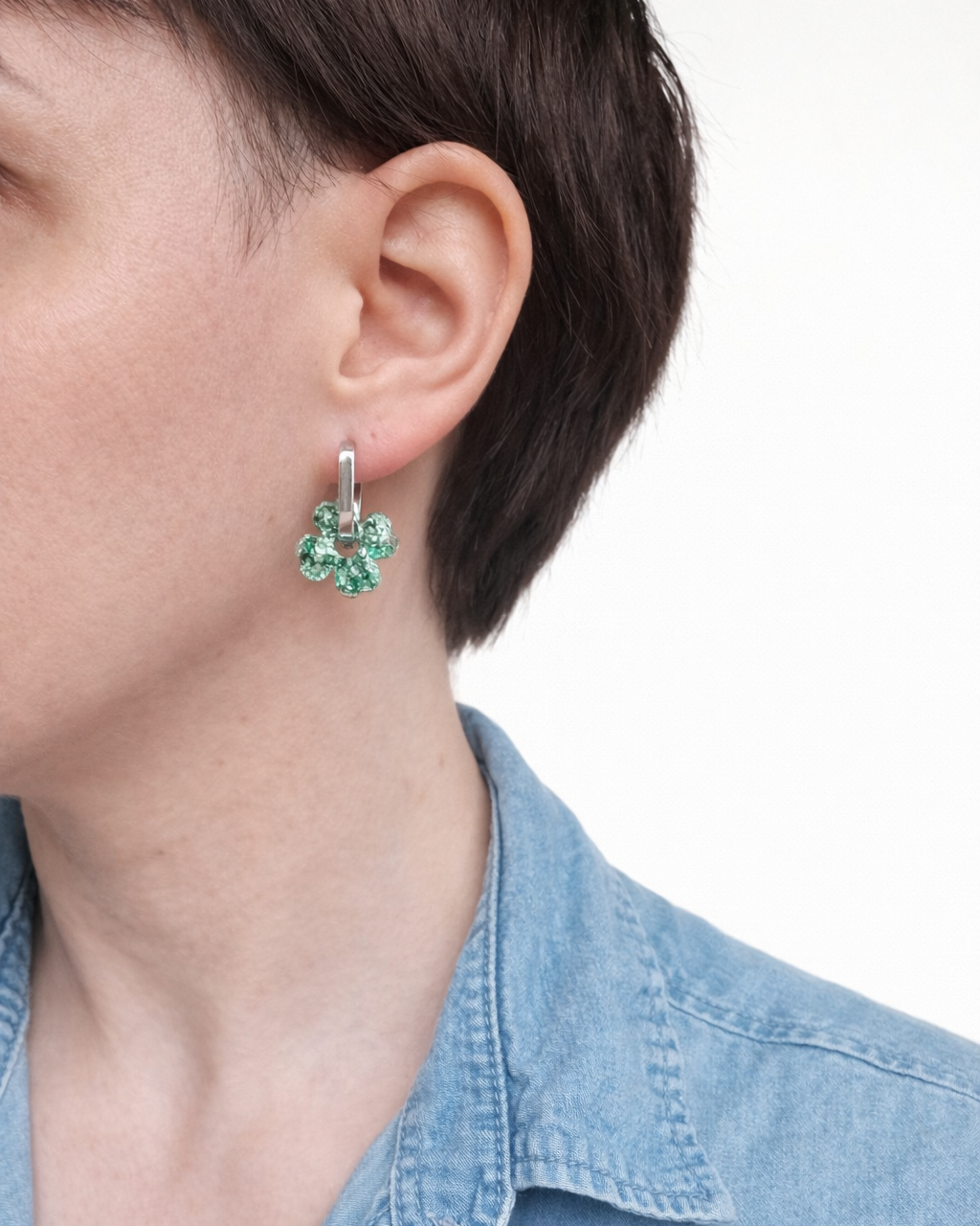Diese Kleeblatt Charms aus Resin passen in alle Creolen im Shop.