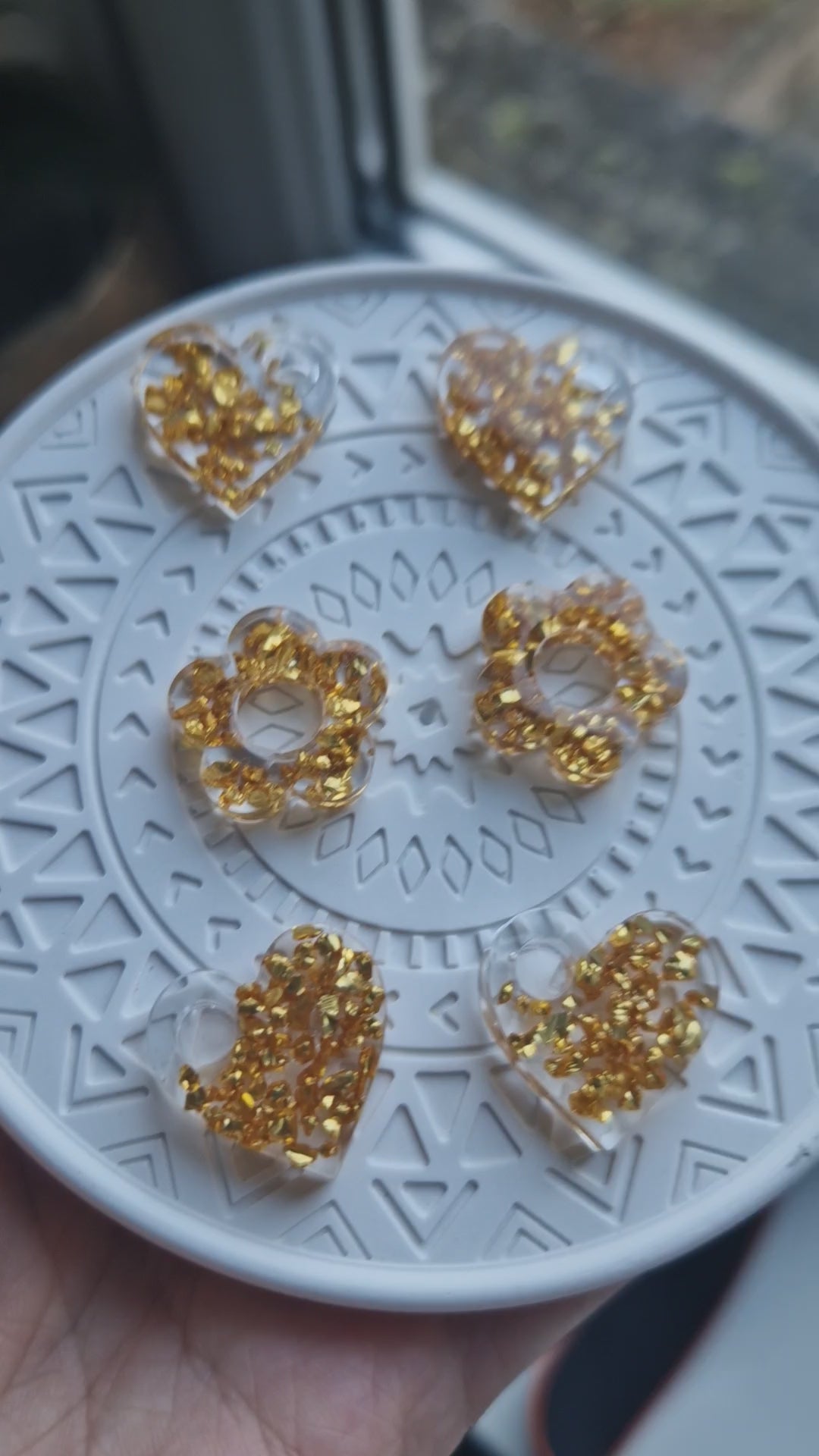 ✨ Design: Die Blüten sind aus hochwertigem, glasklarem Resin gefertigt und mit wunderschönen goldenen Glassplittern gefüllt.