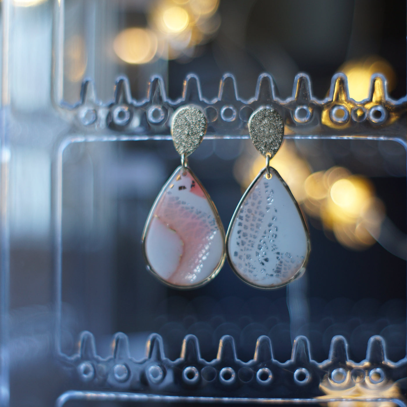 Einige erhalten dann noch einen Mantel aus Resin für ihren Extraglanz und werden dann mit hochwertigen Komponenten zu fertigen Schmuckstücken zusammengesetzt.