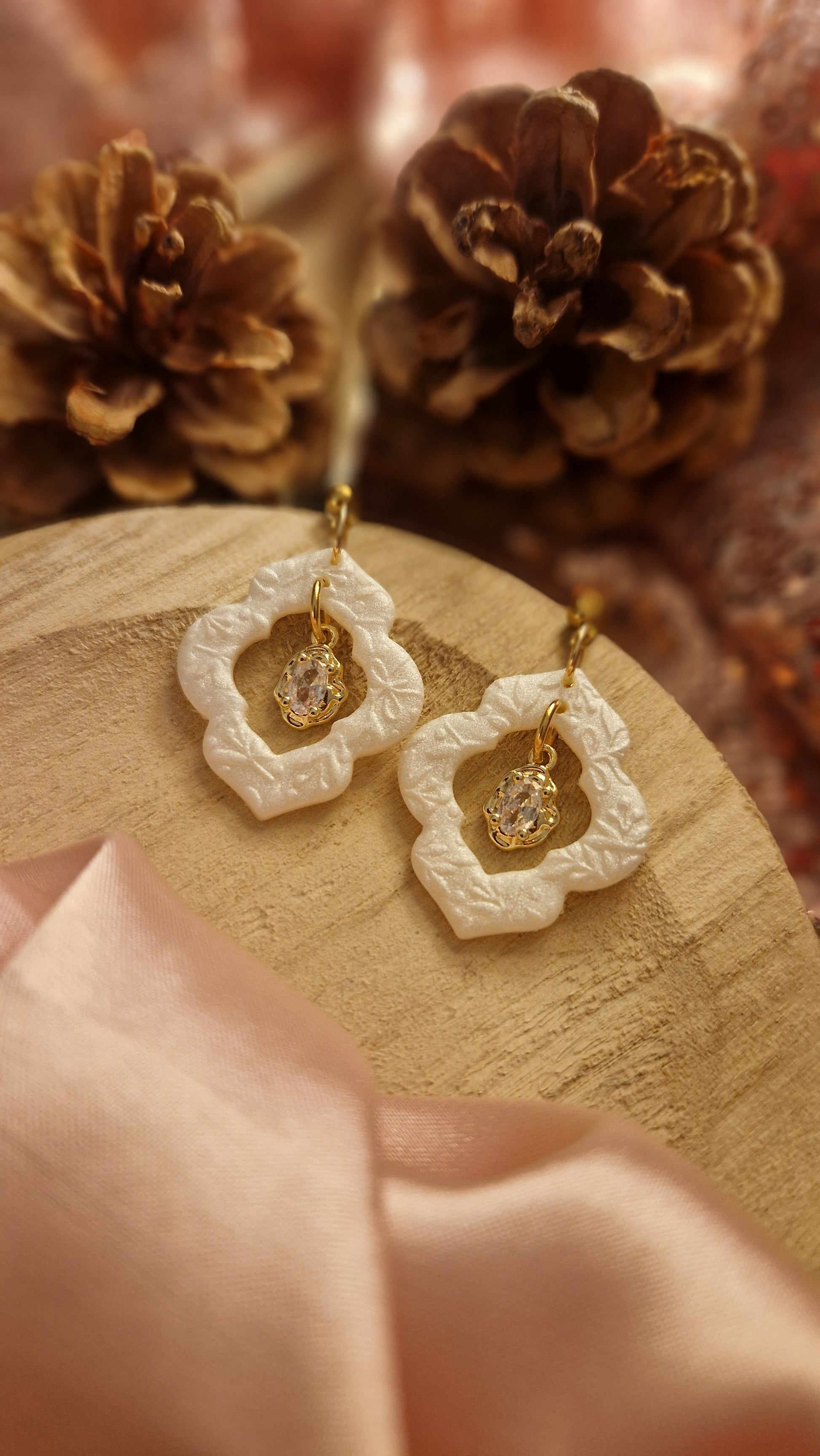 Die Frosted Frames überzeugen durch ihr elegantes Ornament-Design und einen fest integrierten Zirkoniakristall in der Mitte, der dezent das Licht einfängt. Die frostige, glitzernde Oberfläche verleiht den Ohrringen einen soften, edlen Look mit besonderem Charakter.