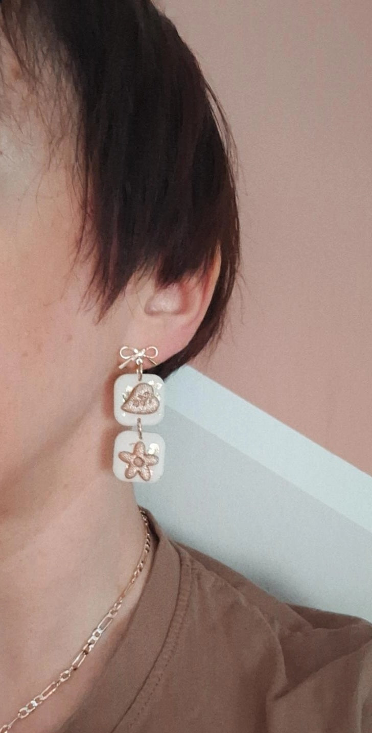 Alle Schmuckstücke bestehen aus Polymer Ton & sind mit Liebe handgemacht. Dazu werden die richtigen Tonfarben zuerst angemischt und ggfs. noch mit einem Muster versehen. Im Anschluss wird der Ton ausgestochen/geformt und wandert für 50min in den Backofen. Die abgekühlten Teile werden dann geschliffen, poliert, gebohrt und von Feinstaub befreit.